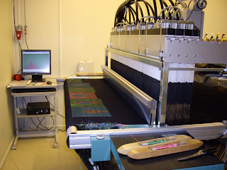 Un mois et deux jours, pour être précise que je suis à Oslo. Alors, je te manque ? Le temps passe si vite c’est assez incroyable et paradoxal. Je m’explique, il y a des journées où limite je trouve le temps long et puis pouf ça fait un mois que je suis là. Tu piges ? Pareil, une semaine passée à l’école et limite, j’ai l’impression d’en avoir plus appris que l’année dernière… En parlant de cours, voilà, le tissage numérique c’est fini et je suis épuisée. Pour te dire, je ne suis même pas sortie hier soir !! J’ai donc commencé à tisser le jeudi vers 11h. J’ai rapidement avalé un truc le midi et je m’y suis remise jusqu’à 18h30 et j’ai du arrêter car j’avais mon cours de norvégien. Comme je voulais absolument finir le truc, j’y suis retournée le lendemain à 7h30 pour enfin pouvoir finir mon tissage à 10h30… Je te laisse faire le compte, à peu près 10h de tissage… je te raconte pas la fatigue parce que même si on appelle la bête, un métier à tisser numérique, il fait pas tout le boulot, non, non, tu dois quand même passer la navette, t’assurer que plusieurs trucs fonctionnent bien, de réparer les fils cassés, toussa.