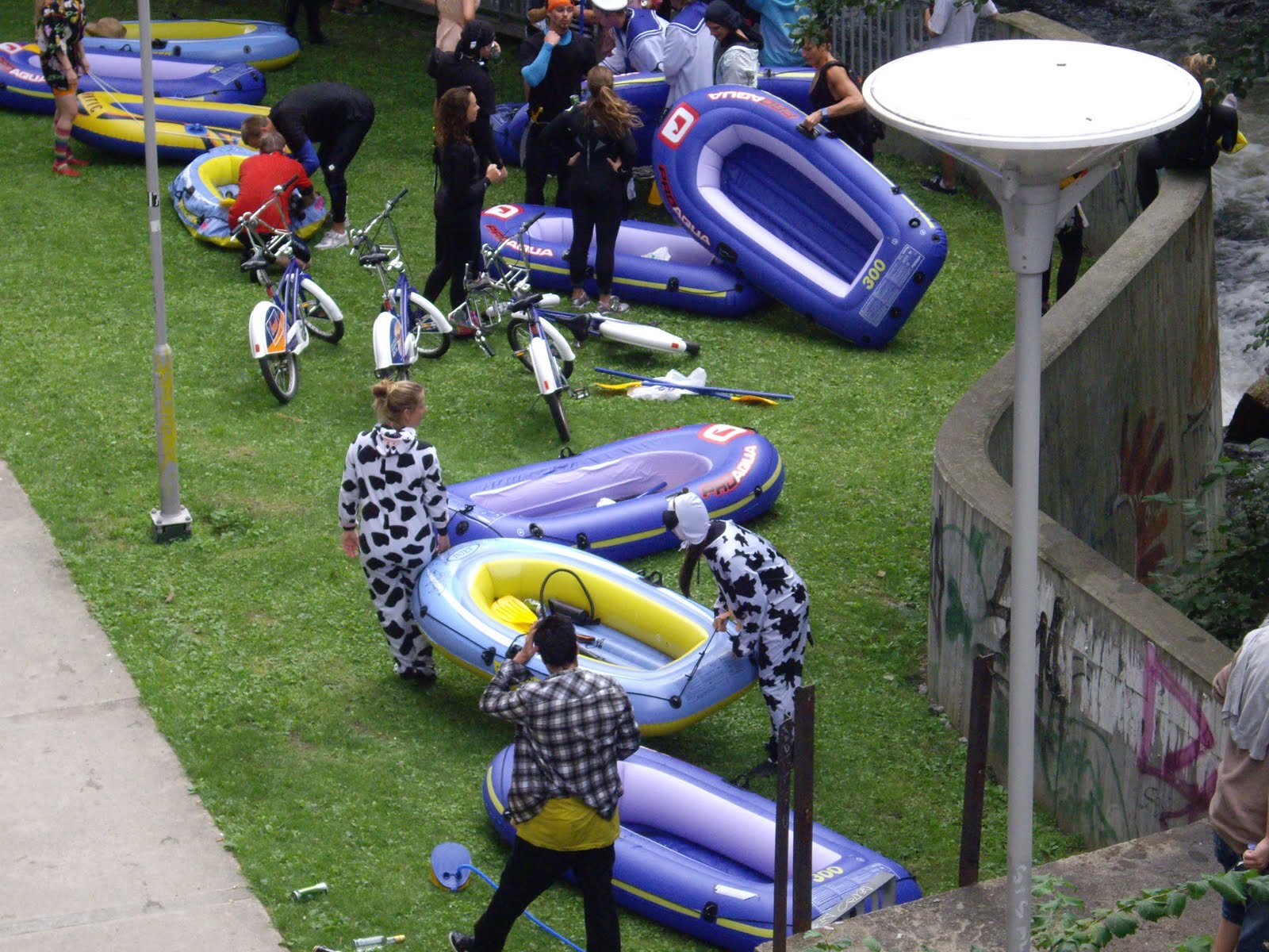 Ah, et j’oubliais, étant allée me balader en milieu d’après-midi, je me fais doubler par deux norvégiens déguisés en matelots portant un matelas gonflable.